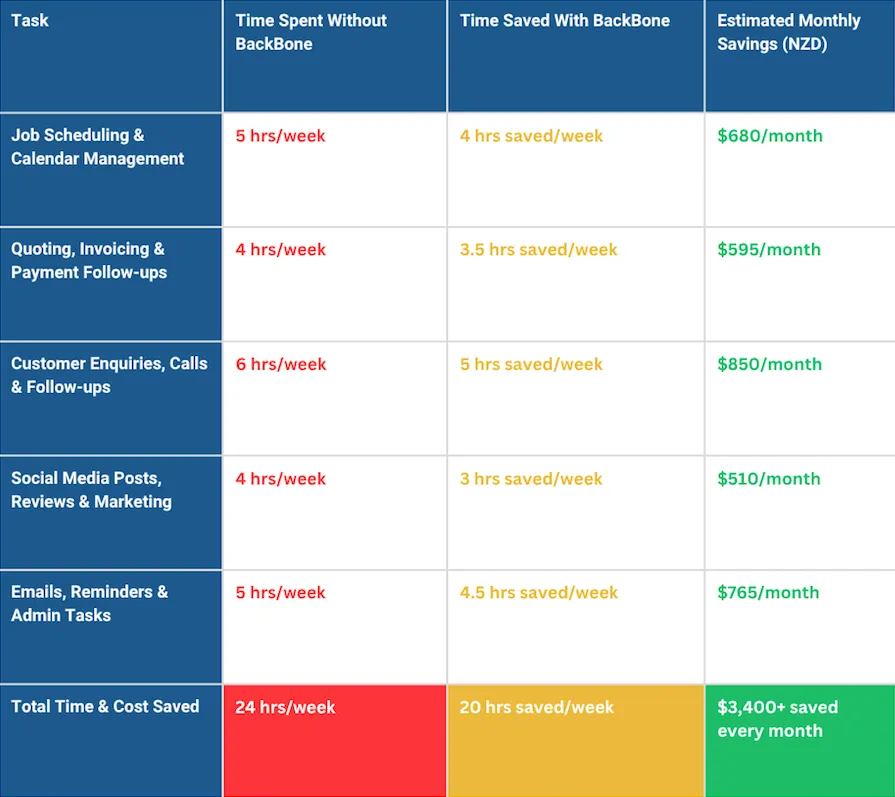Backbone captures leads, follows up, and books jobs automatically turning enquiries into paying clients.